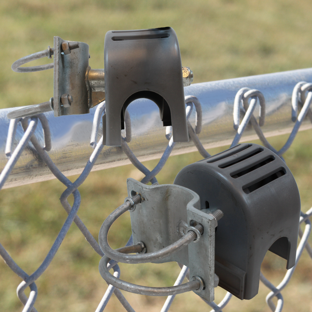 This cantilever roller is used on a commercial galvanized chain link fence. This is a Nylon Cantilever Roller 4" x 2-1/2".