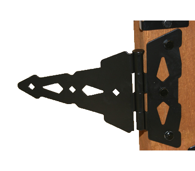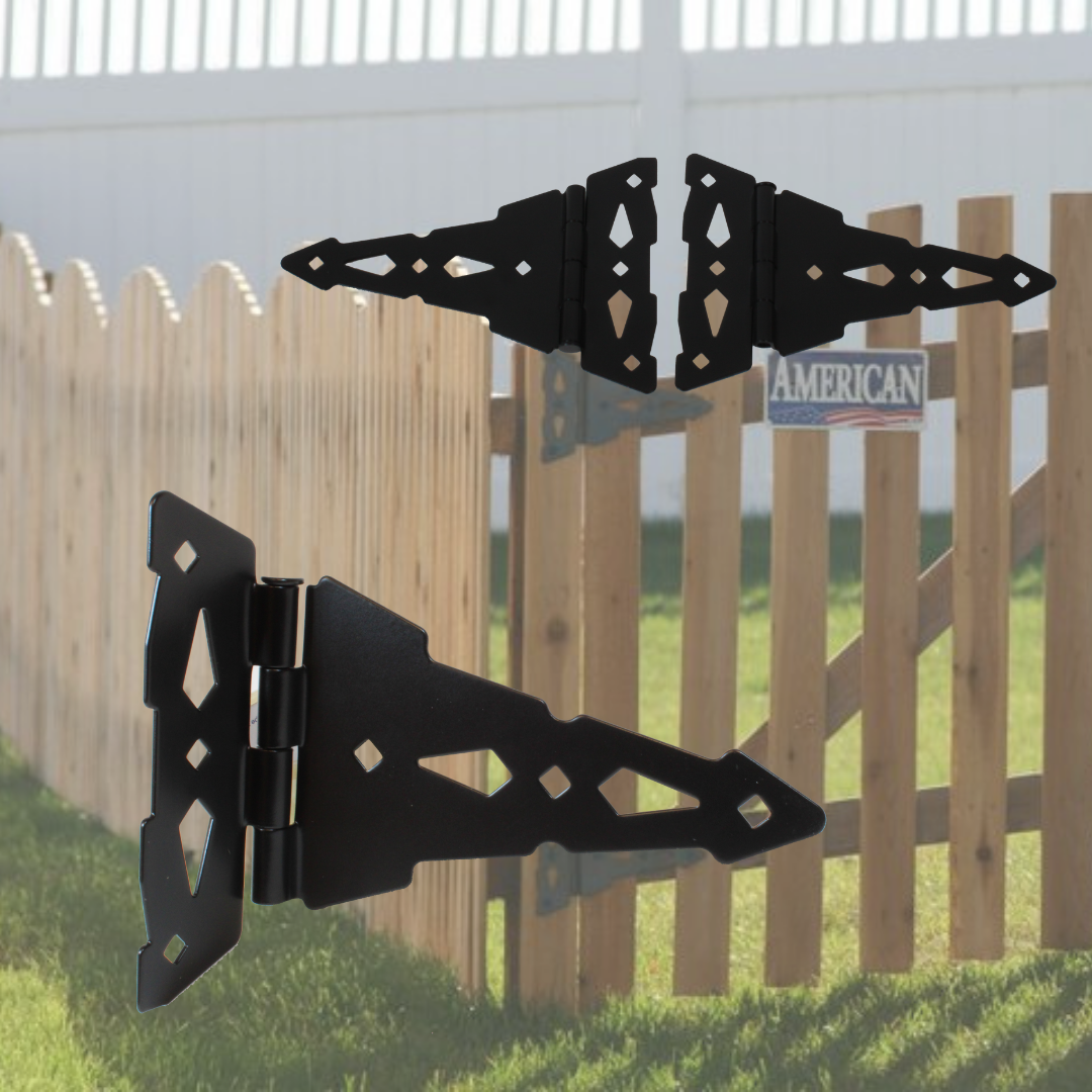 Contemporary T-Hinges are used on wood gates. Use one pair of hinges on gates 5' high or shorter; use three hinges per gate for gates 6' high and taller. Contemporary hinges feature an ornamental unique design and black finish.